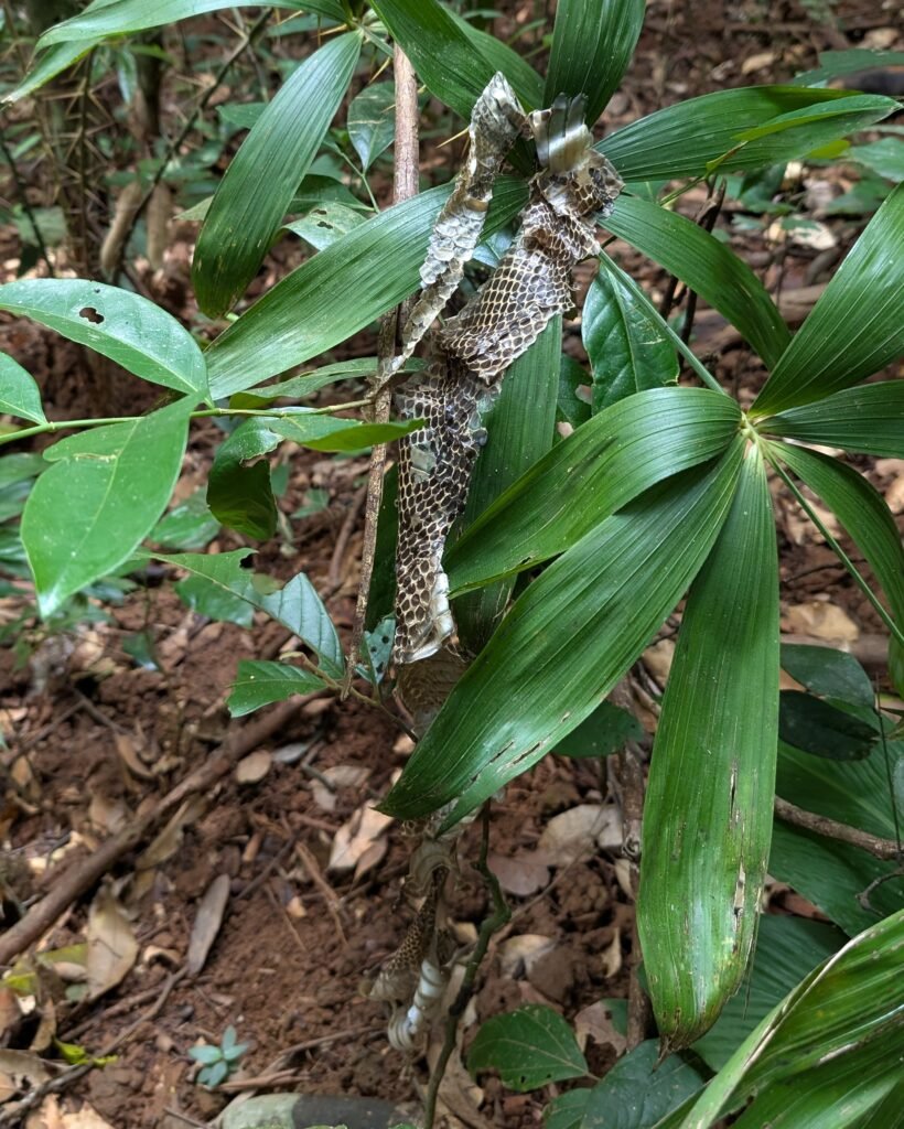 We took a different route the second day to see different parts of the jungle. We were lucky enough to see a bearded monkey on our way, and some other wildlife including the recently shed skin of what must have been a very large cobra (thankfully the snake itself was long gone). The trek was hard at times, which means you spend more time looking at the floor to avoid falling than admiring the beautiful scenery, but when we stopped we could appreciate the jungle for its true magnificence.