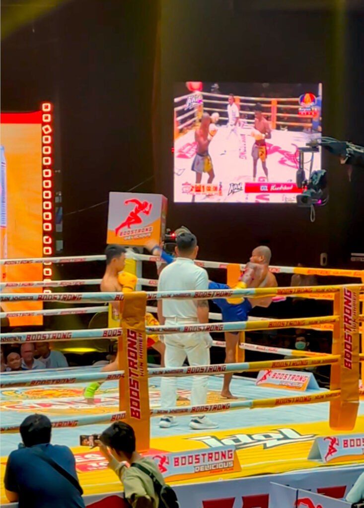 Luckily, the answer is yes! And it’s easier to watch than you think. Fights are filmed at Bayon TV Studio in south-west Phnom Penh Thursday – Sunday evenings from 6pm-8pm, and the studio is open to a live audience. We went on a weekend, and think this is the best atmosphere you will find to watch the sport live.