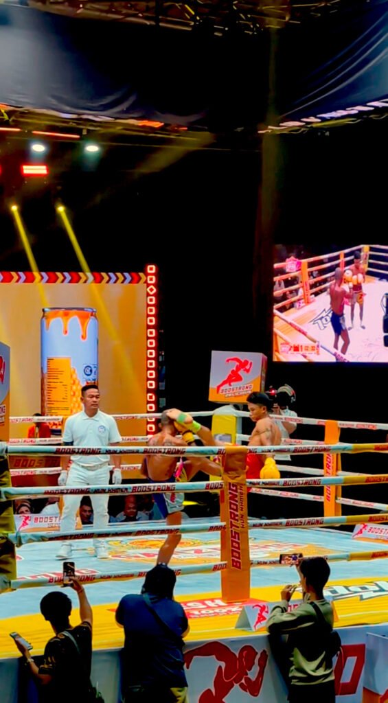 You can also buy some snacks and drinks from the stands outside the arena, or bring your own if you’d rather. There were local families with children enjoying the free entertainment and excellent atmosphere with a picnic in the stands (which the family next to us kindly shared with us which we found very touching and wholesome – not the kind vibes we’d expected at a martial arts arena!) and groups of young men with beers cheering at the front.